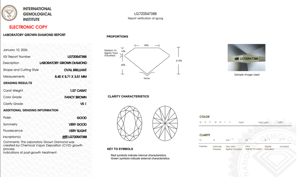 Diamante Ovalado de 1.07ct, Corte Fantasía, Color Champán Intenso, Cultivado en Laboratorio | Diamante Suelto con Corte EX Pulido, Dureza 10/10, para Fabricación de Joyas