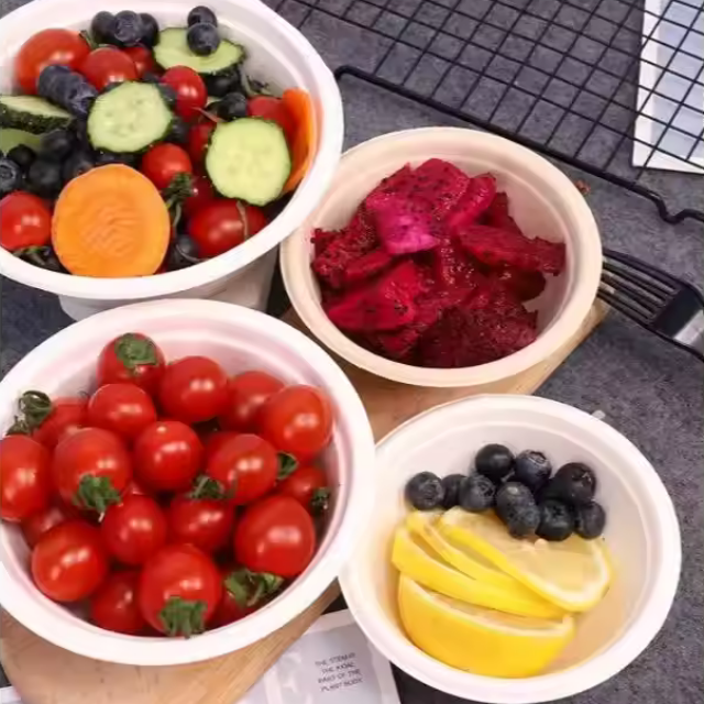 Cuenco ovalado de bagazo 29oz 850ml Fibras de origen vegetal biodegradables directas de fábrica 100% cuencos de sopa desechables sin PFAS a granel