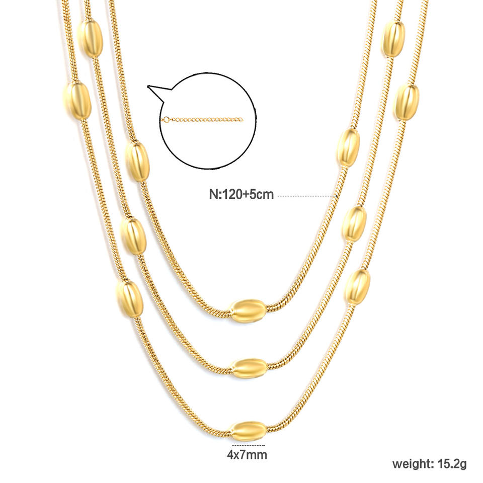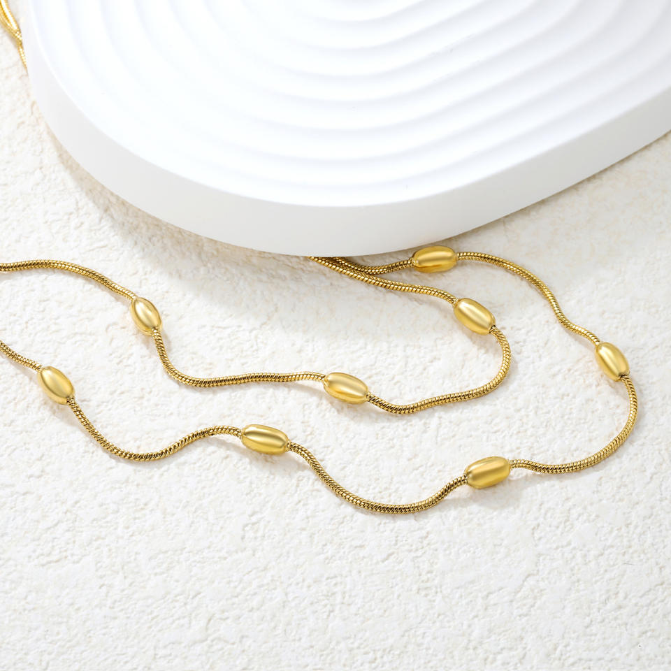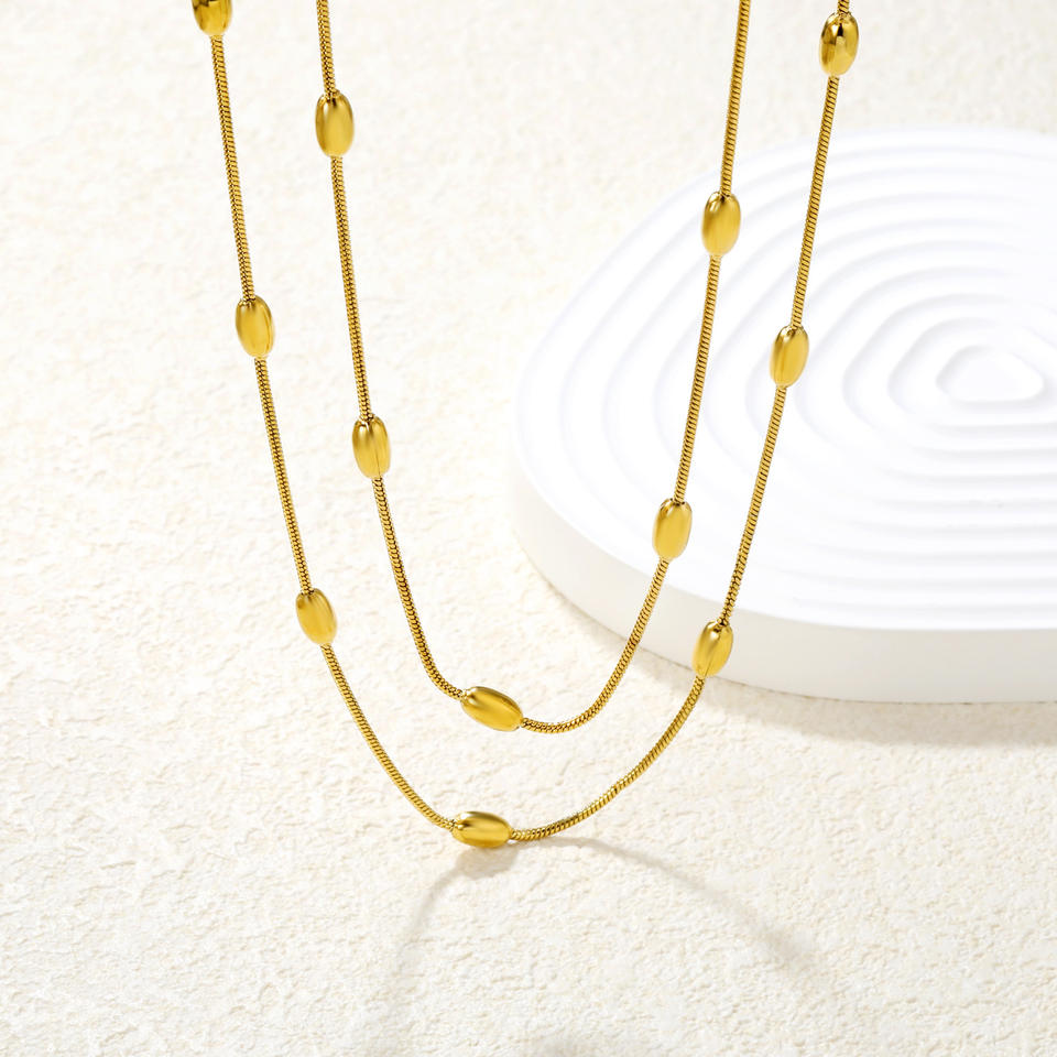 Collar de cadena de serpiente de doble capa con cuentas ovaladas, colgante geométrico simple de aleación de zinc, joyería de moda para mujer