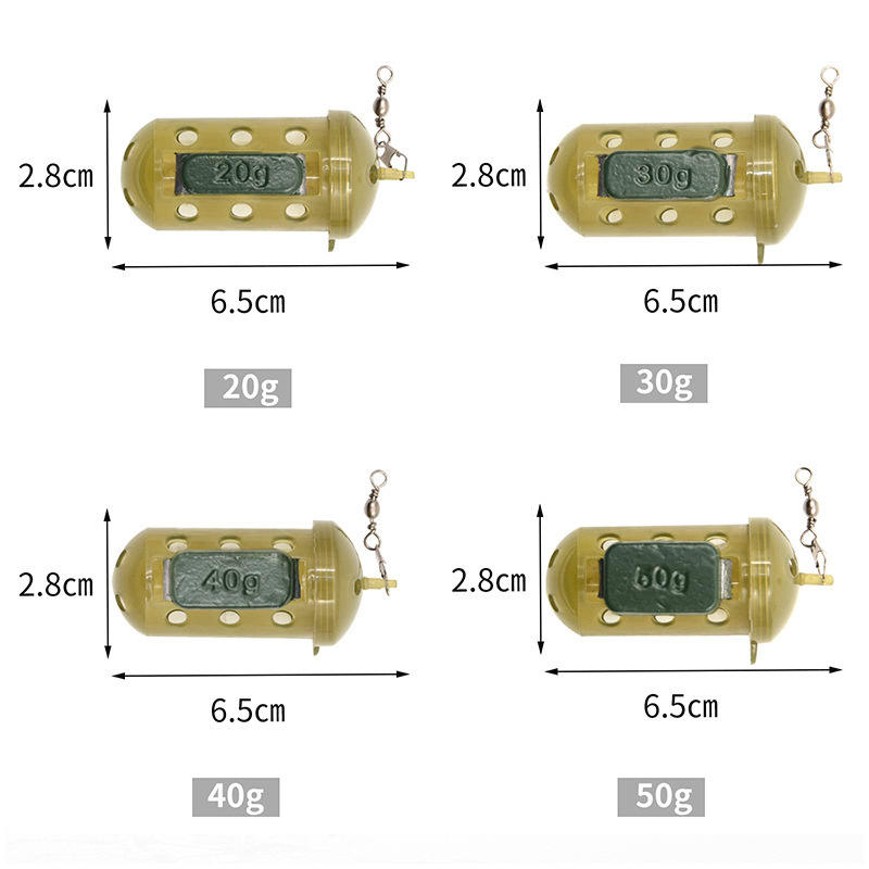 Alimentador Oval Blockend con giratorio 20g/ 30g/40g/50g-Accesorios de pesca de carpa Cesta de plomo Cebo Alimentador Jaula