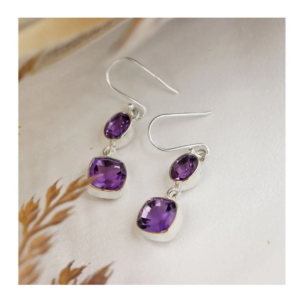 Pendiente de piedras preciosas de amatista de corte ovalado y cojín Plata de Ley 925 con ajuste de bisel Chapado en plata Pendiente colgante de moda.