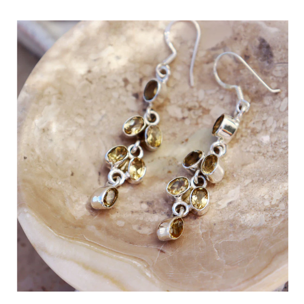 Pendiente de piedras preciosas de citrino de corte ovalado Plata de Ley 925 con ajuste de bisel Chapado en plata Pendiente romántico de moda para mujer.