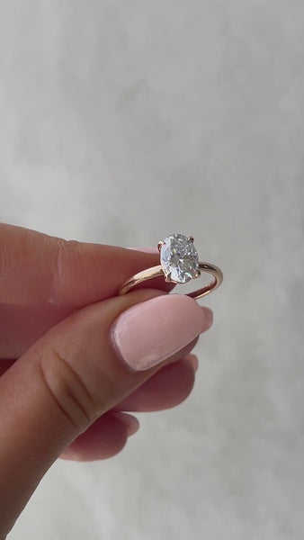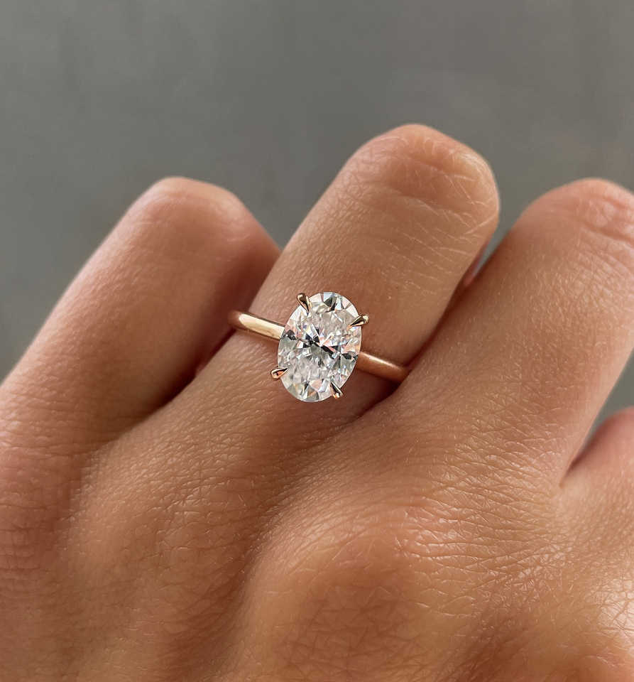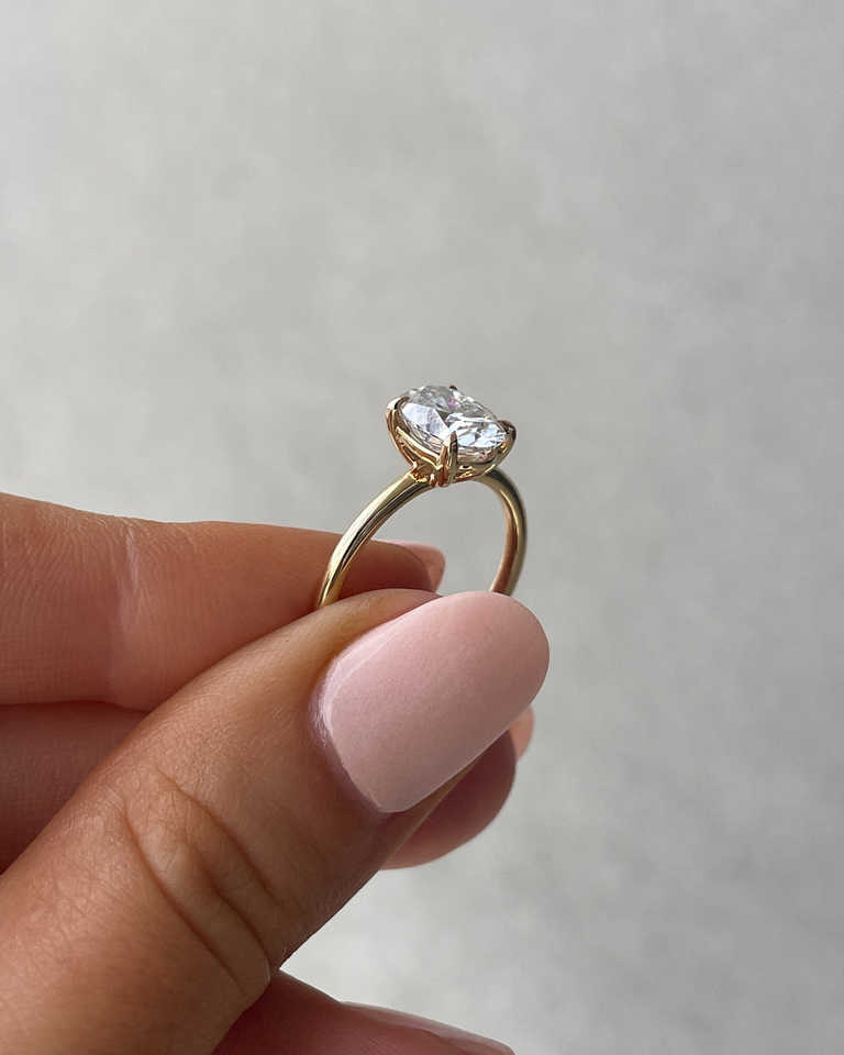 Anillos de compromiso de solitario de diamante cultivado en laboratorio de corte ovalado diseño minimalista Juego de puntas de oro sólido de 18 quilates anillos de solitario de Halo para mujer