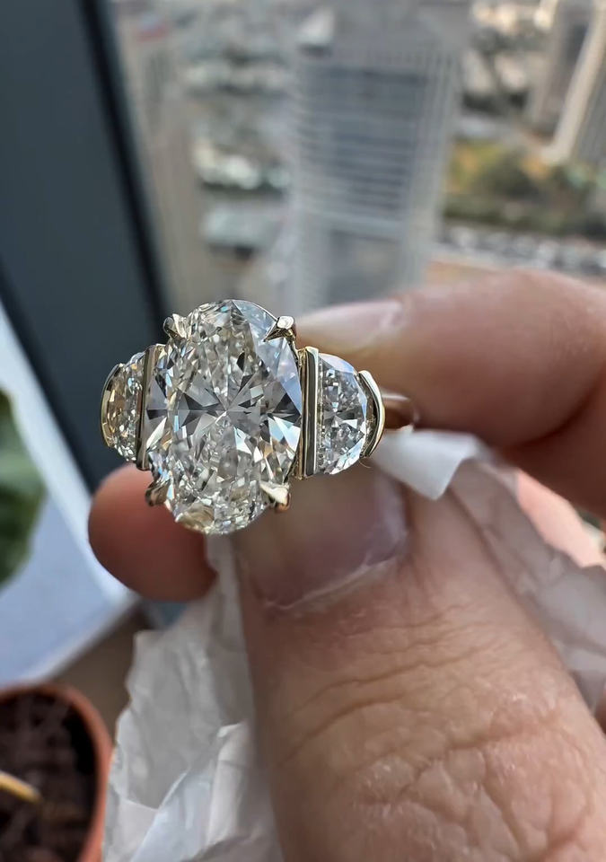 Anillo de compromiso y boda de oro amarillo de 14K con tres diamantes cultivados en laboratorio de corte ovalado, certificado IGI VVS2, anillo nupcial llamativo.