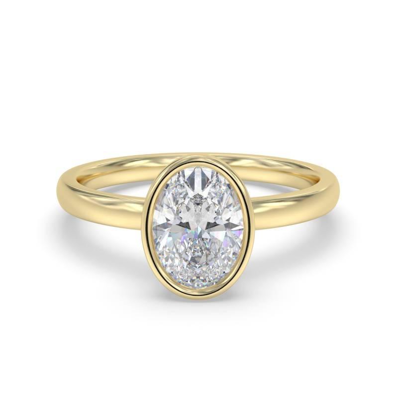 Anillo solitario con bisel de diamantes ovalados de 0.30 ct, diamante cultivado en laboratorio en oro de 18 quilates y platino.