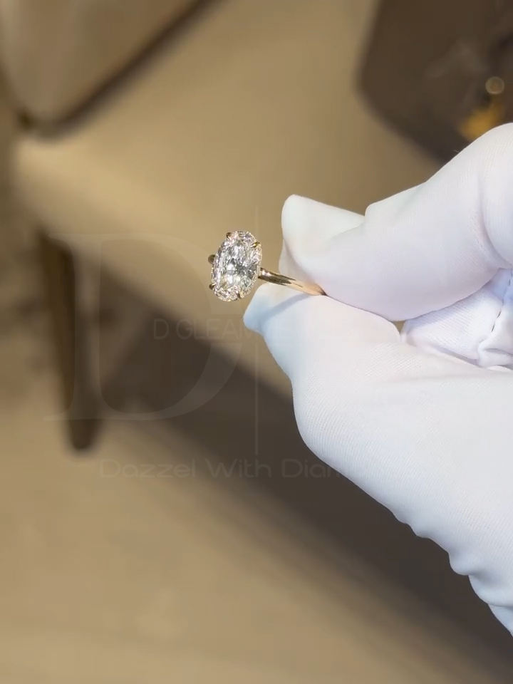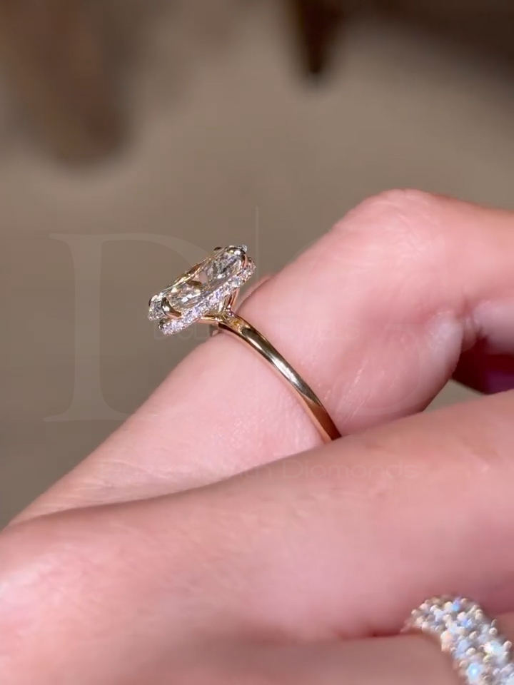 Anillo de compromiso de diamante ovalado, anillo de diamante cultivado en laboratorio ovalado, anillo de Halo oculto, anillo de oro blanco/amarillo/rosa, anillo de diamante para ella