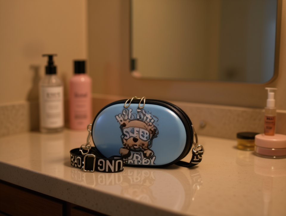 Bolsa de Cosméticos Ovalada Rígida con Diseño de Dibujos Animados, Pequeña Capacidad, Cierre de Cremallera, Material PP con Asa Suave