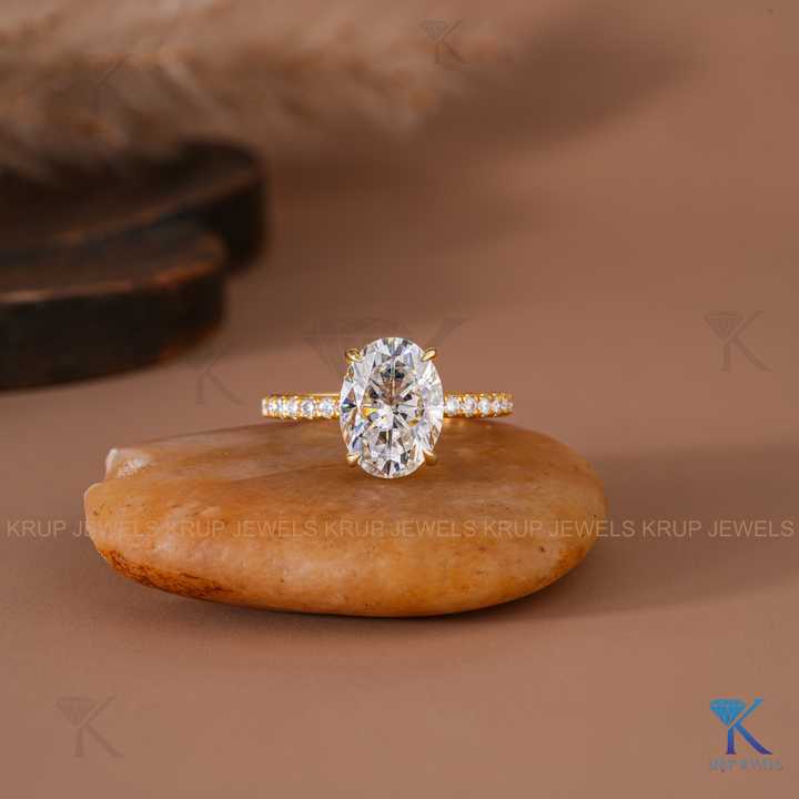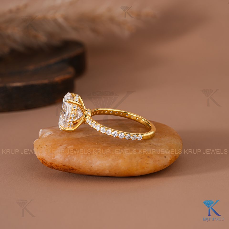 Anillos de Compromiso con Diamantes Cultivados en Laboratorio, Ovalados, Oro Amarillo Sólido de 14K, Halo Oculto, Fabricante y Proveedor de Joyería Nupcial Personalizada