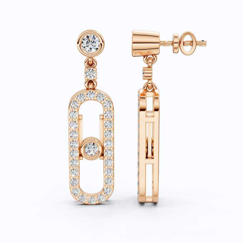 Pendientes Colgantes de Diamantes Cultivados en Laboratorio con Eslabones Ovalados, 0.65 CTW, Certificados por IGI, Oro Sólido de 14K, Baño de Rodio Blanco, Regalo de Lujo para Fiesta