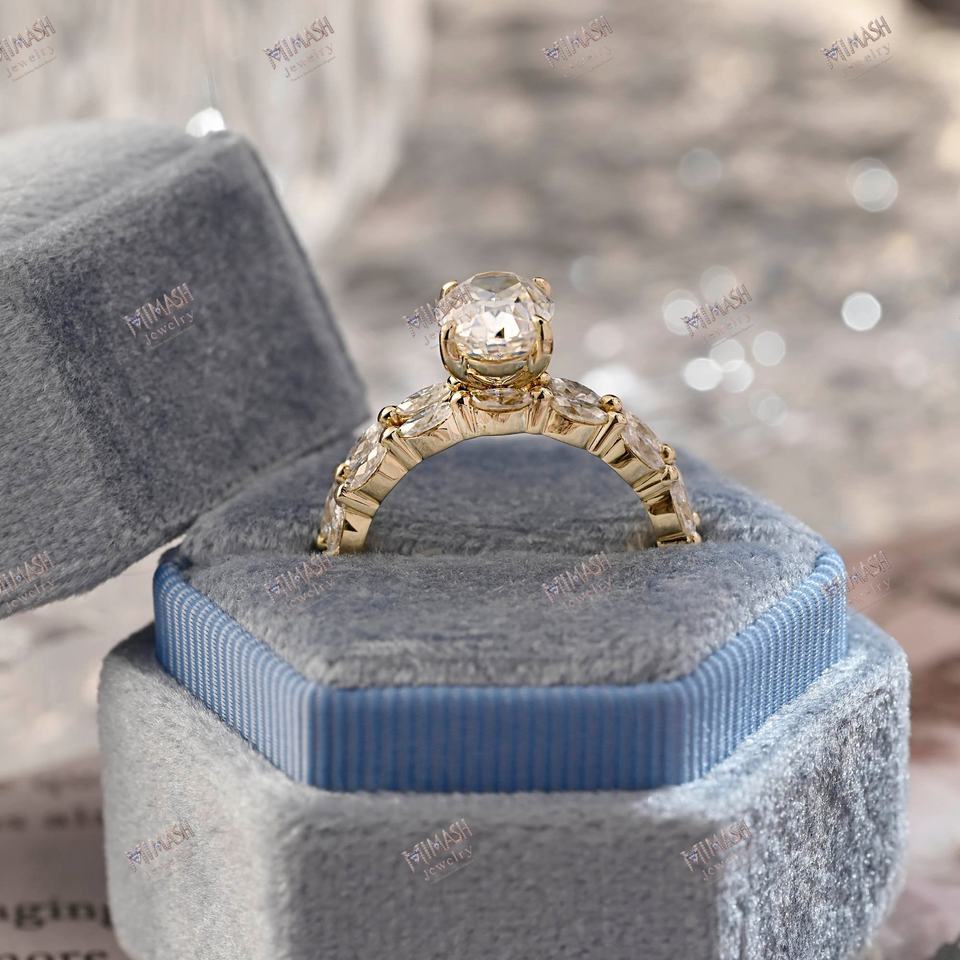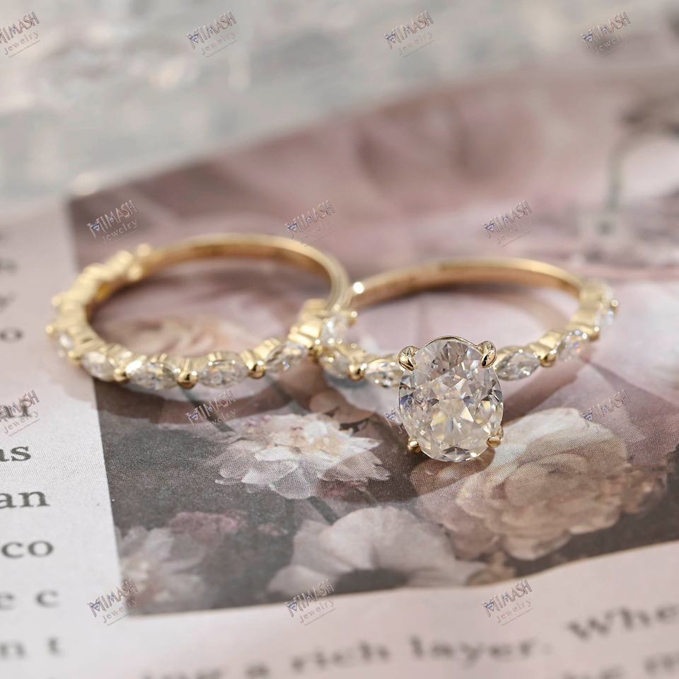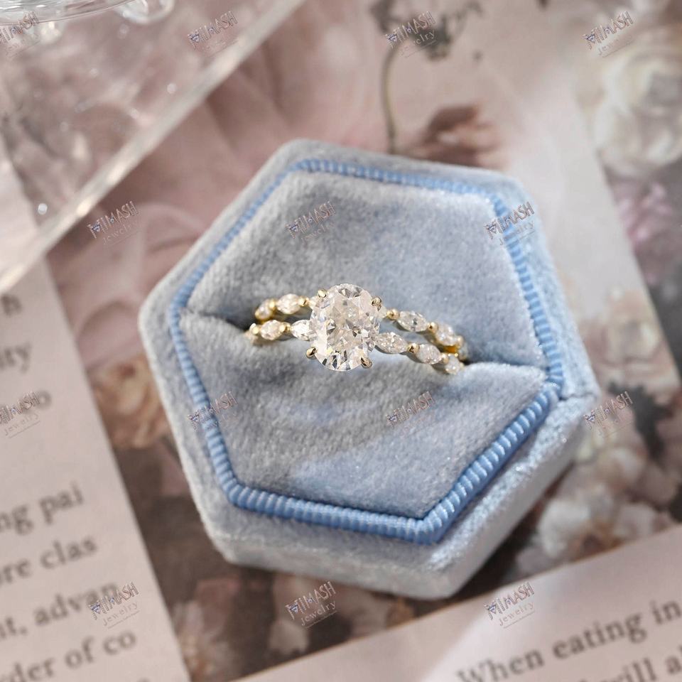 Conjunto de anillo de promesa personalizable de moissanita de corte ovalado/Marquesa, joyería nupcial de aniversario hecha a mano para mujer