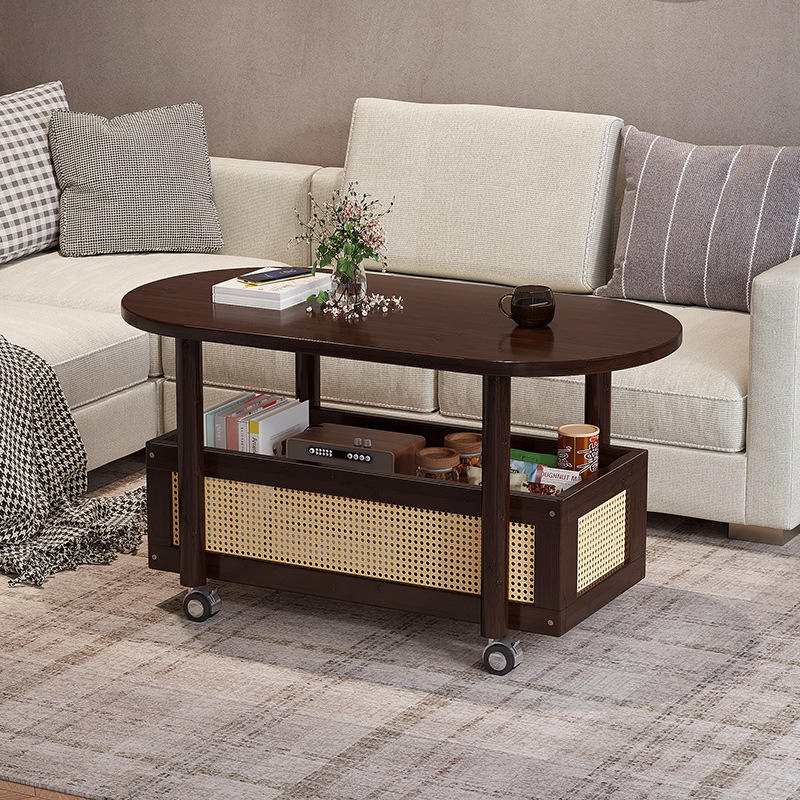 Oval Mobile Coffee Table Rolling Side Table Storage End Table