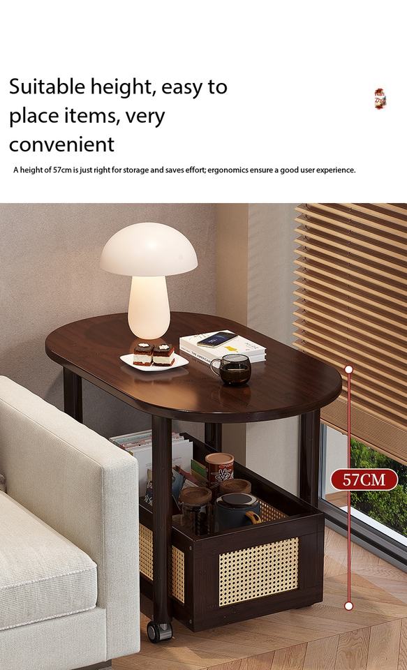 Product Type:Oval Mobile Coffee Table Rolling Side Table Storage End Table
