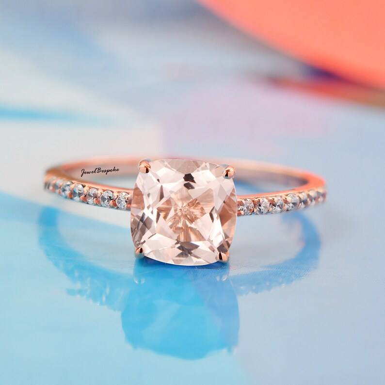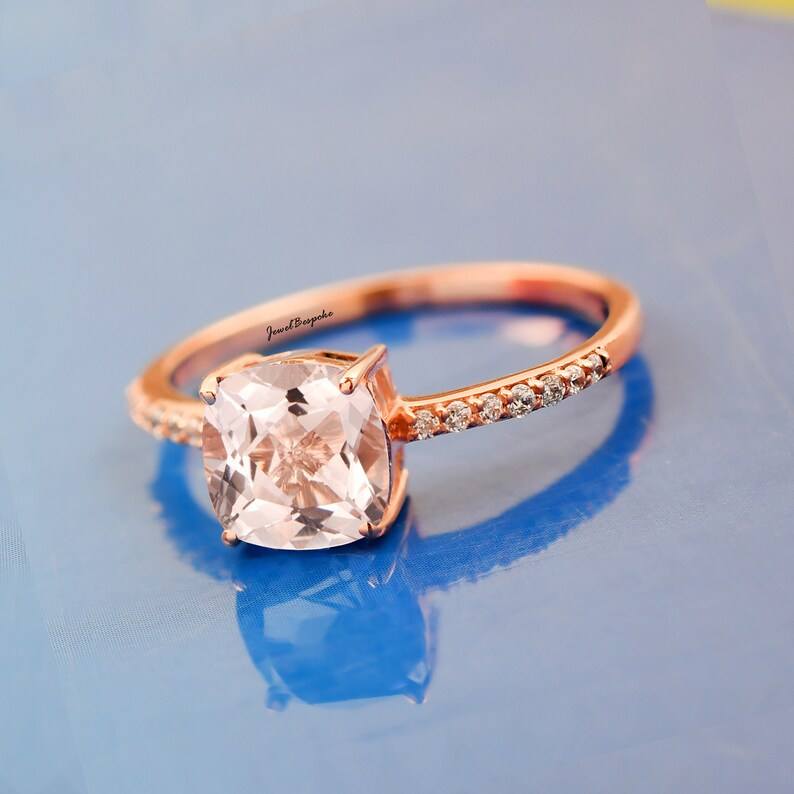 Anillo de compromiso de morganita ovalada con anillo de promesa nupcial de circón hermosa joyería de boda regalo elegante para sus mujeres