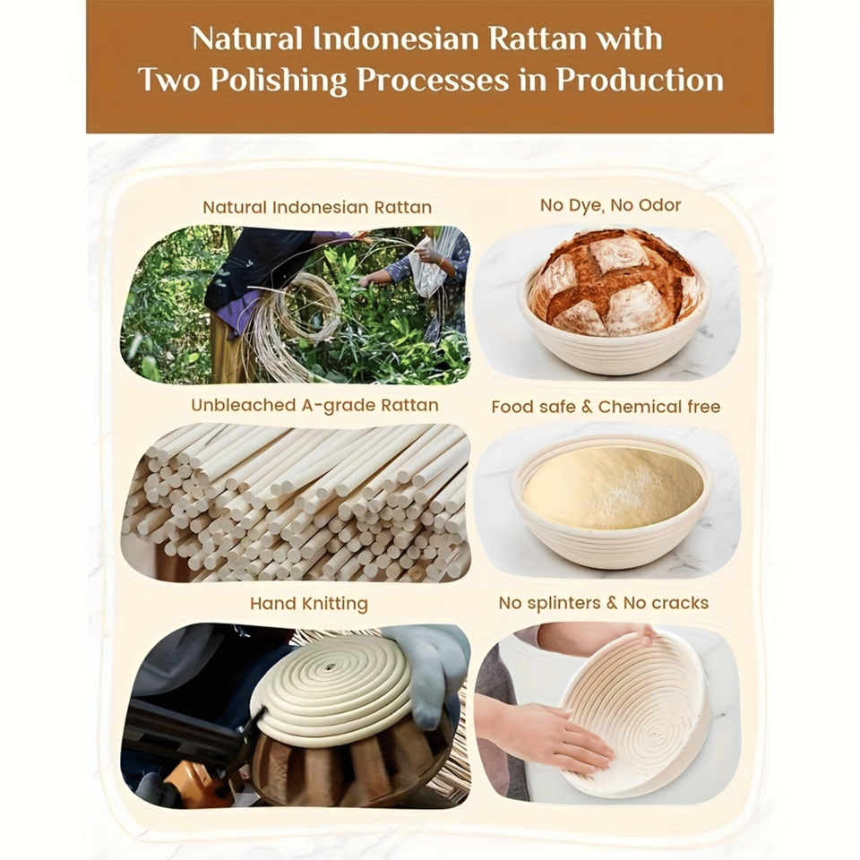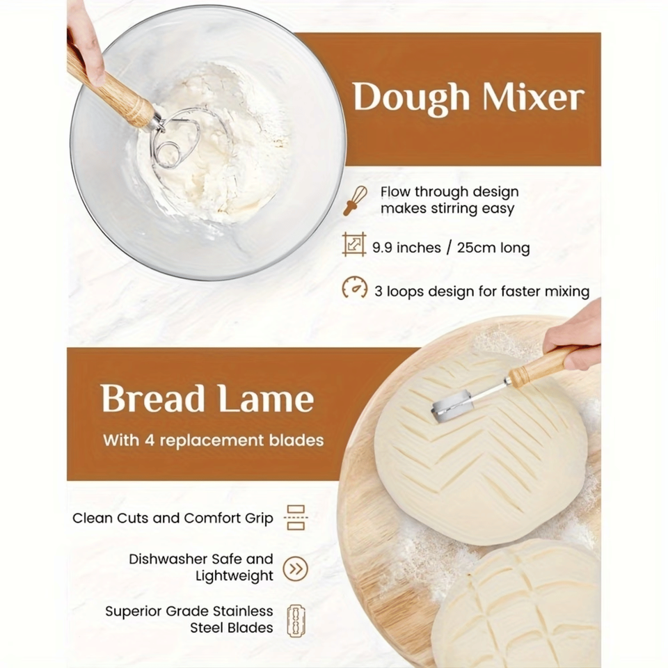 Juego de Cestas Ovaladas para Fermentar de 9.06 y 9.84 Pulgadas con Varilla Amasadora Incluida, Kit de Herramientas para Hacer Yogur y Pan, Juego de Utensilios para Hornear