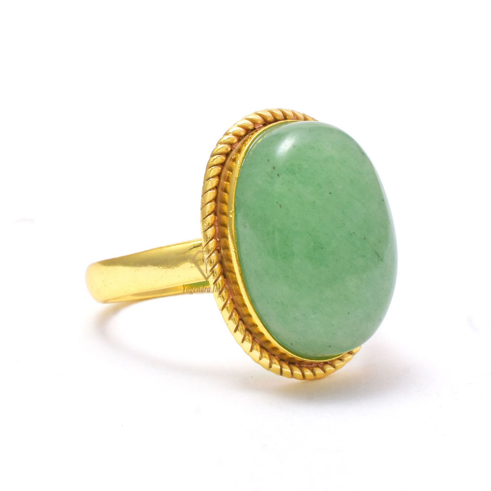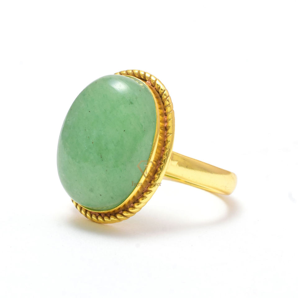 Anillo de plata esterlina 925 de forma ovalada con bisel de Aventurina verde natural Anillo de bodas hecho a mano Proveedores al por mayor
