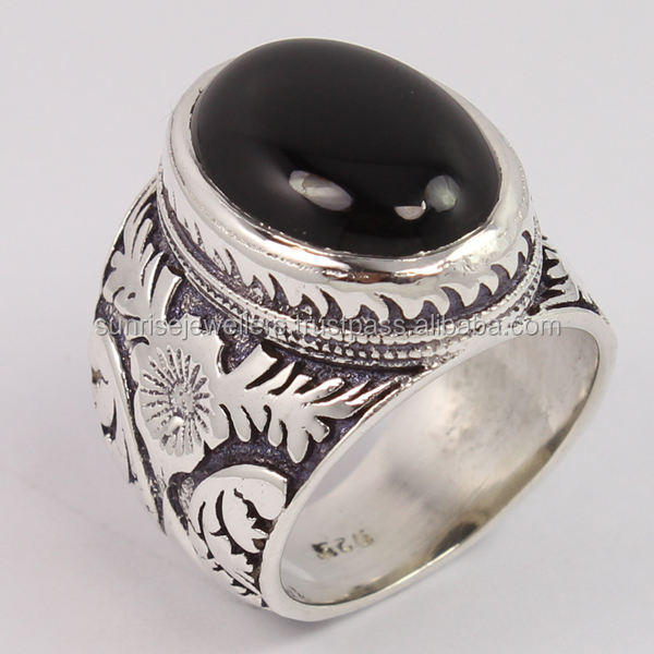 Bisel de ónix negro de forma ovalada, anillo de bodas de plata de ley 925, joyería clásica de piedras preciosas para dedos hermosos