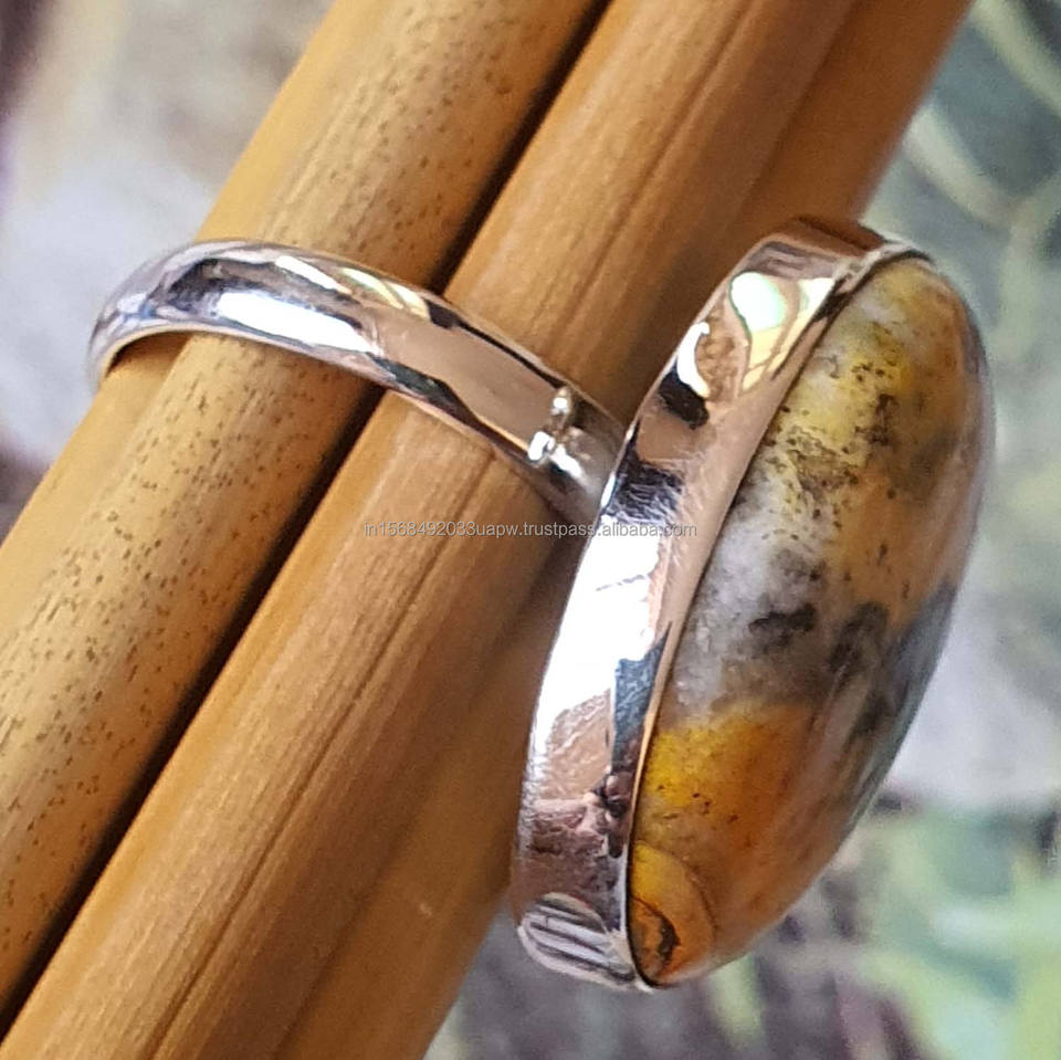 Natural Bumble Bee Jasper 925 Sterling Silver Ring
