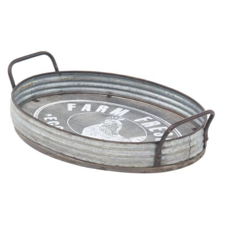 Utensilios de cocina de forma ovalada Bandeja de servicio galvanizada con mango de metal Decoración de mesa Hoteles y restaurantes Bandeja de servicio