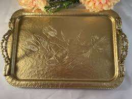 Utensilios de cocina de forma ovalada, bandeja para servir, detalles intrincados para cenar, bandeja para servir de latón Vintage, cocina, decoración del hogar, uso de pieza central