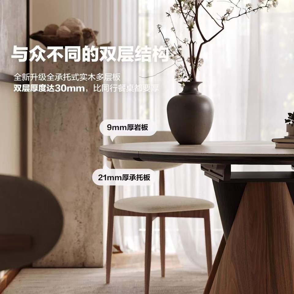 Mesa de Comedor Ovalada de Madera Maciza con Base Cónica, Diseño Moderno y Minimalista para Uso Doméstico