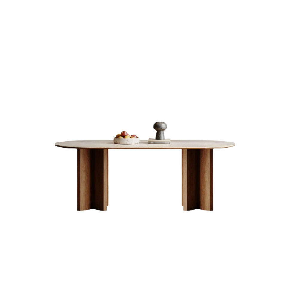 Mesa de Comedor Ovalada de Madera Maciza con Base en Forma de Cruz, Diseño Estable para Comedor