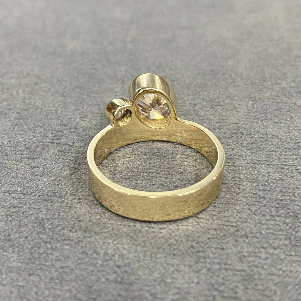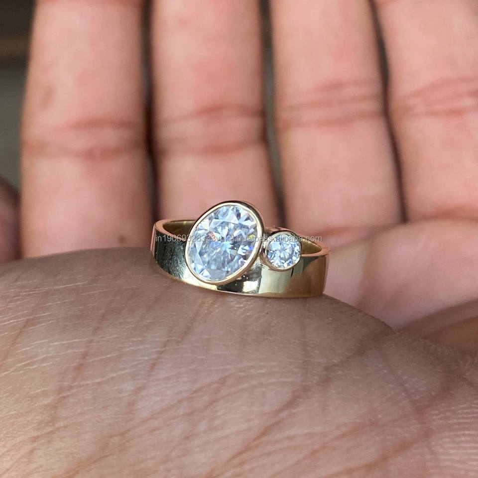 Anillo de compromiso de moissanita de corte ovalado y redondo con bisel de banda Toi Et Moi gruesa única, anillo de boda de propuesta para aniversario