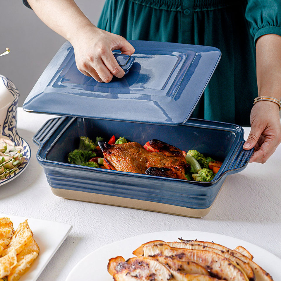 Bandeja Rectangular Multifuncional para Horno, con Revestimiento Cerámico, Apta para Microondas y Lavavajillas