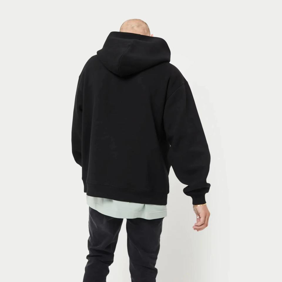 Sobre el escote acanalado dobladillo y puños Jet Black Sudadera con capucha de gran tamaño Top80 % algodón 20% poliéster hombros caídos pulóver estilo cruzado