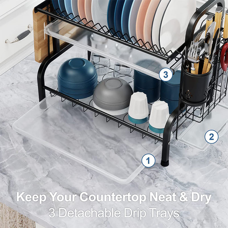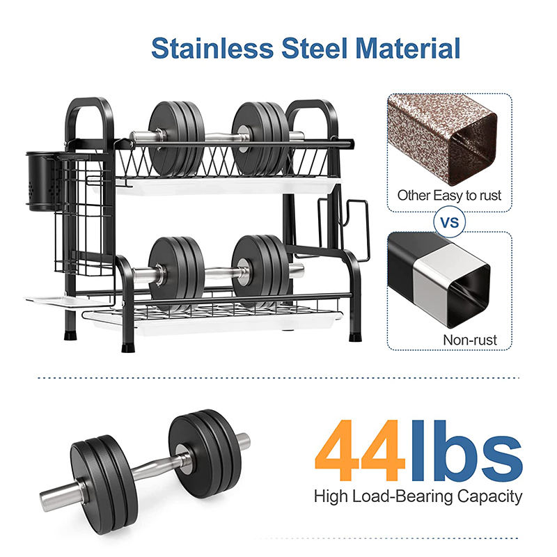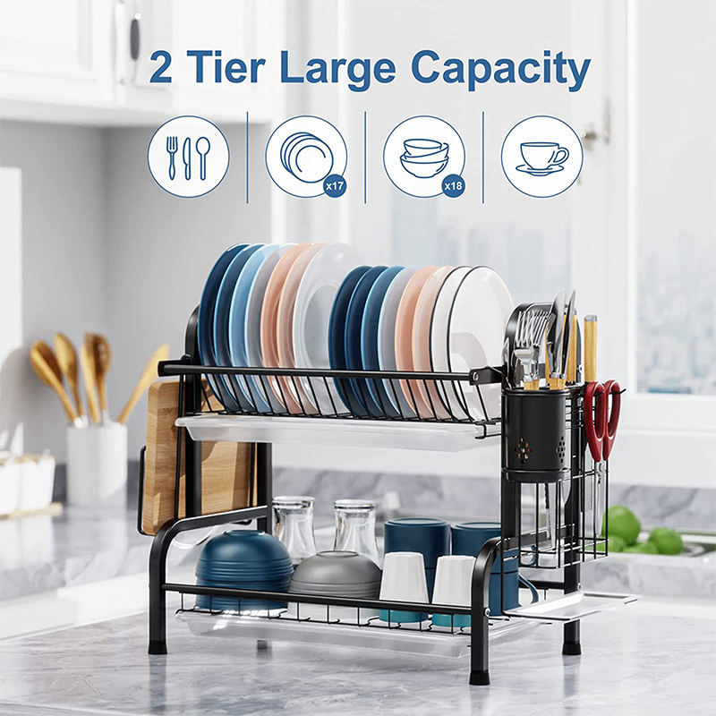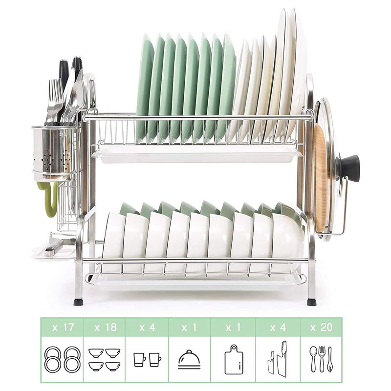 Escurridor de Platos Metálico de Dos Niveles para Encima del Fregadero, de Acero Inoxidable, para Almacenamiento de Vajilla