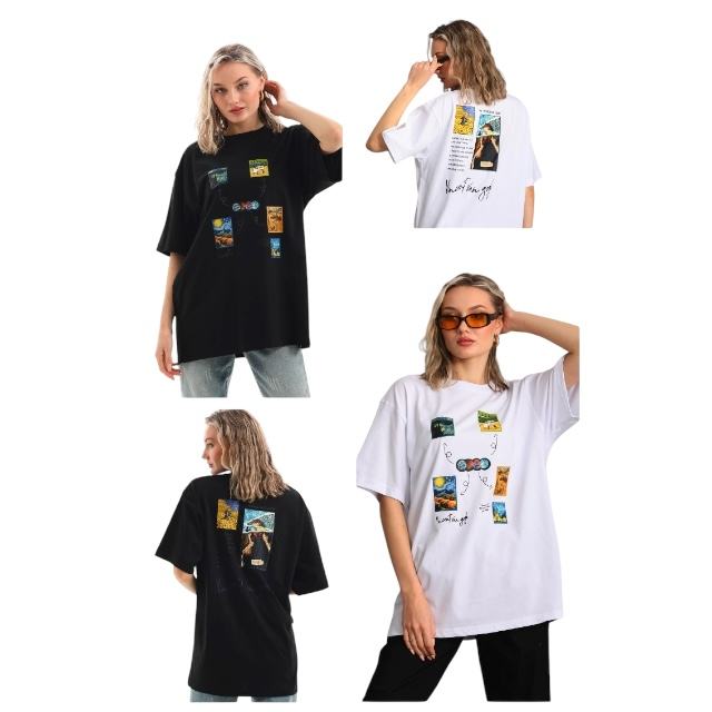 Camiseta Extra Grande, Estilo Urbano, Estampado Gráfico Vintage, Talla Grande, Algodón Grueso para Mujer
