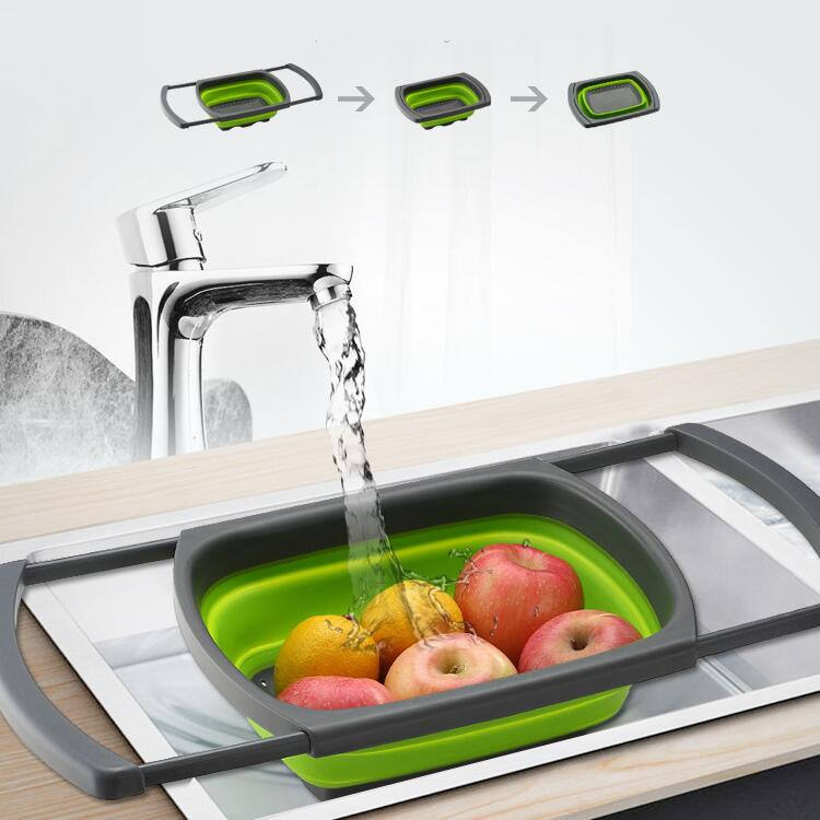 Coladores para Frutas y Verduras sobre el Fregadero, Colador Cuadrado, Colador Plegable de Plástico