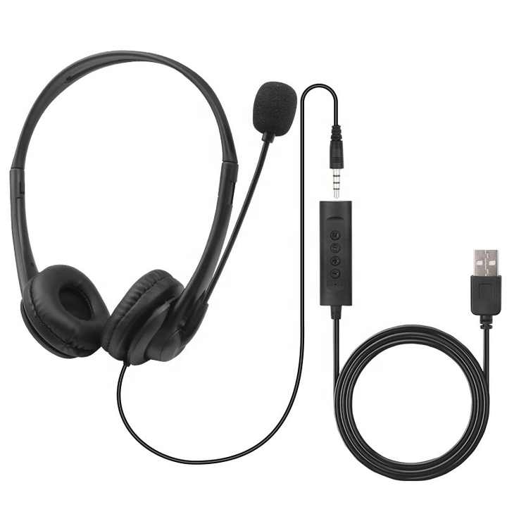 Auriculares Profesionales Negros con Micrófono para Centro de Llamadas, USB, Diseño Sobre la Oreja, Resistentes al Agua IPX-4, Micrófono Dinámico