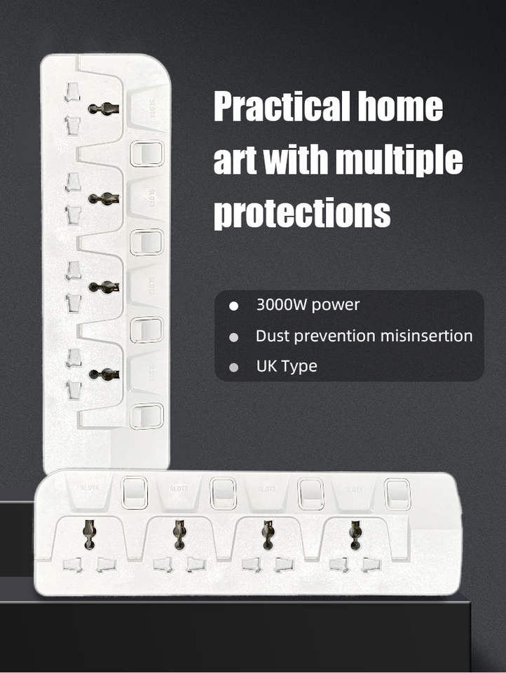 Interruptor de Sobrecarga, Enchufe de Extensión Eléctrica de 4 Tomas, Regleta de Alimentación para Hogar y Oficina, Serie BETA, Latón, 10A, Enchufes LED