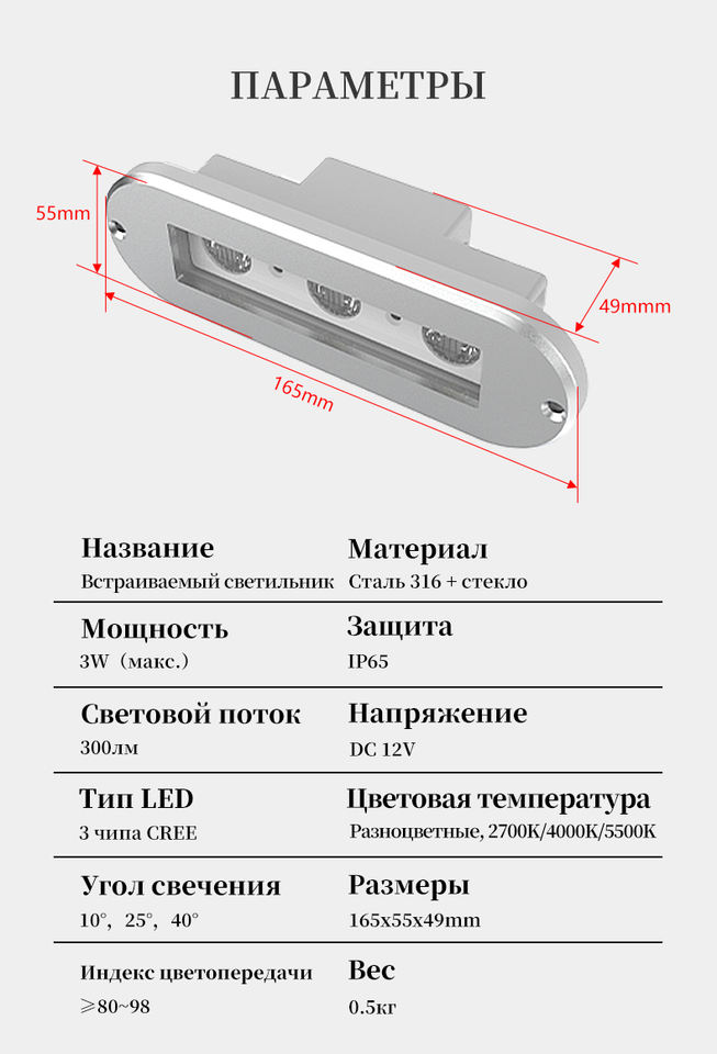 Overseasdesign RU-120 - Luz LED Ovalada de 3 LED, IP65, Impermeable, de Acero Inoxidable de Grado Marino, para Escaleras Subacuáticas, para Oficina