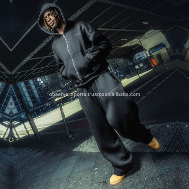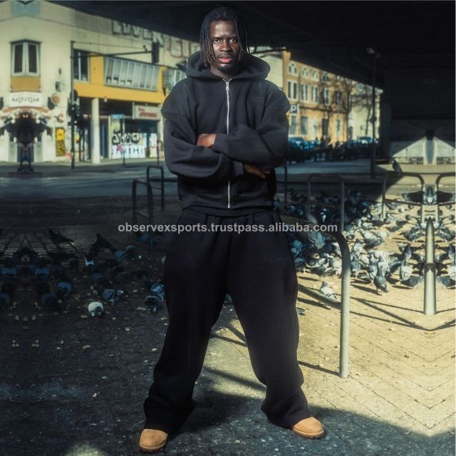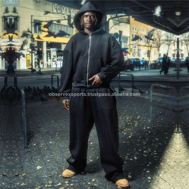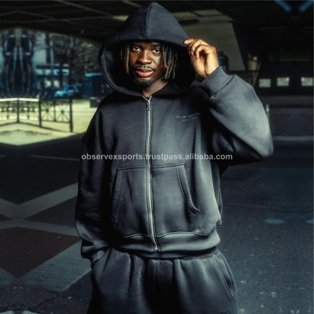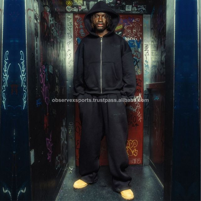 Sudadera con capucha doble de gran tamaño Diseño de corte especial personalizado Conjunto de sudadera con capucha y pantalones de chándal con cremallera lavados con ácido para hombres