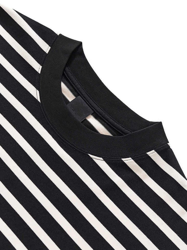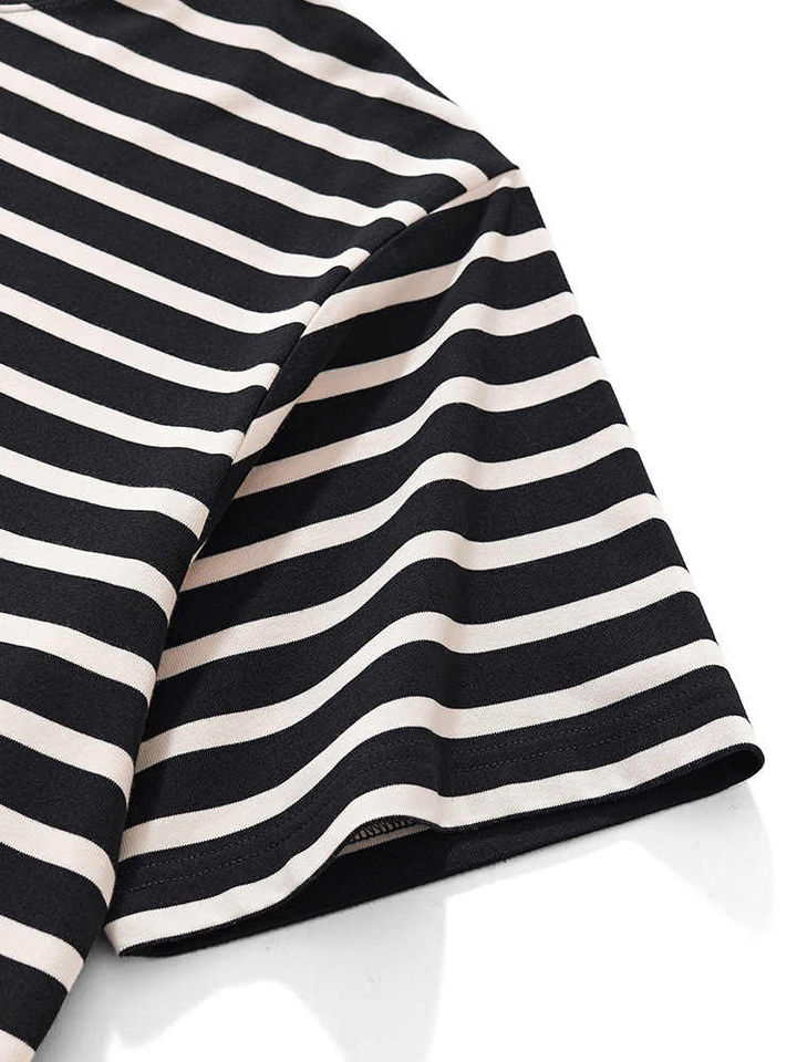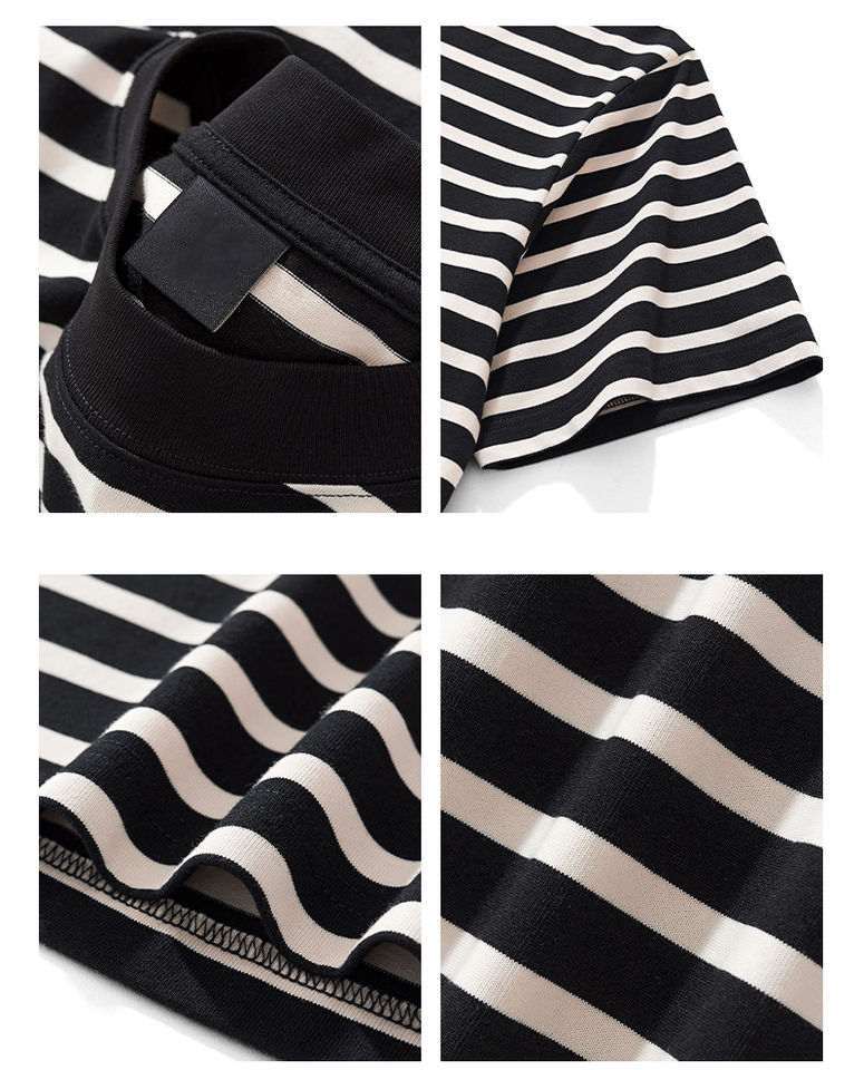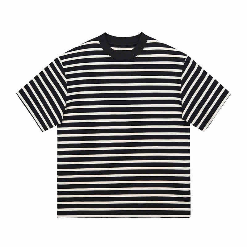 Camiseta de Hombre de Manga Corta con Cuello Redondo y Rayas, Estilo Americano, 230g, Venta Directa de Fábrica, Talla Grande