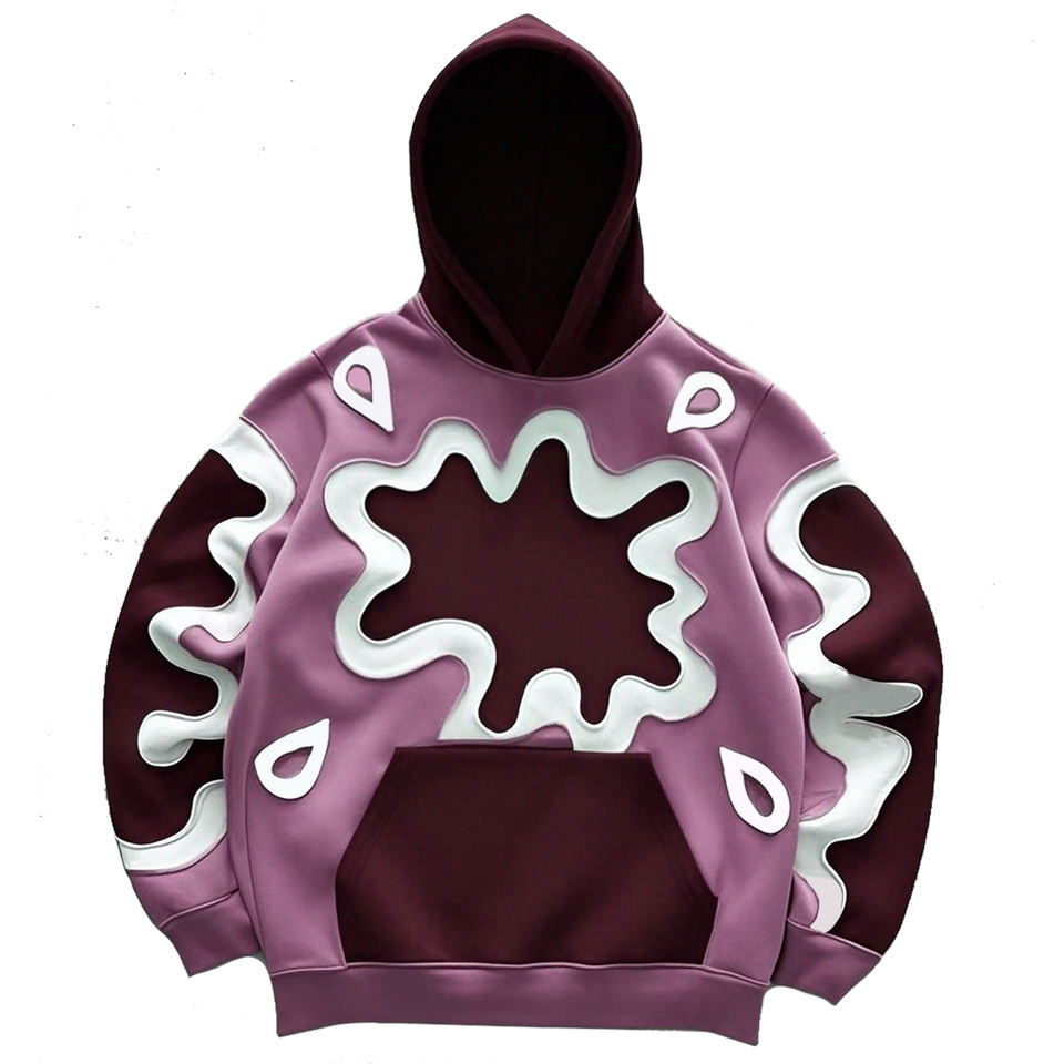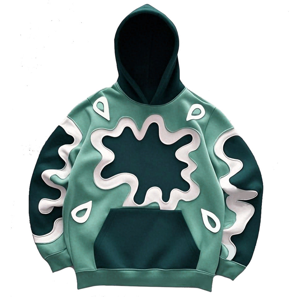 Sudadera con Capucha Oversize con Apliques de Ondas Abstractas, Estilo Streetwear Unisex, Bloques de Color, Multicolor, Venta al por Mayor, OEM, Logotipo Personalizado