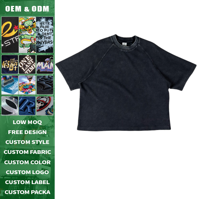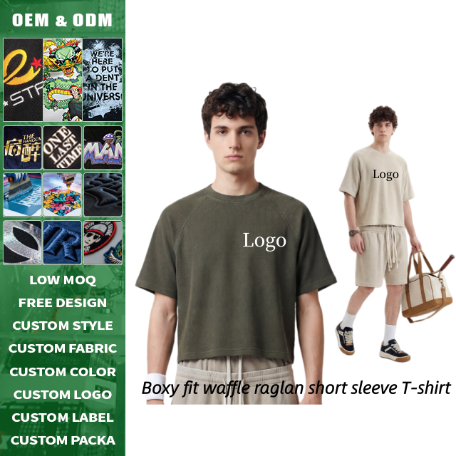 Camiseta Oversize de Manga Raglán con Tejido Waffle, Estilo Vintage Desgastado, para Hombre, Estilo Urbano