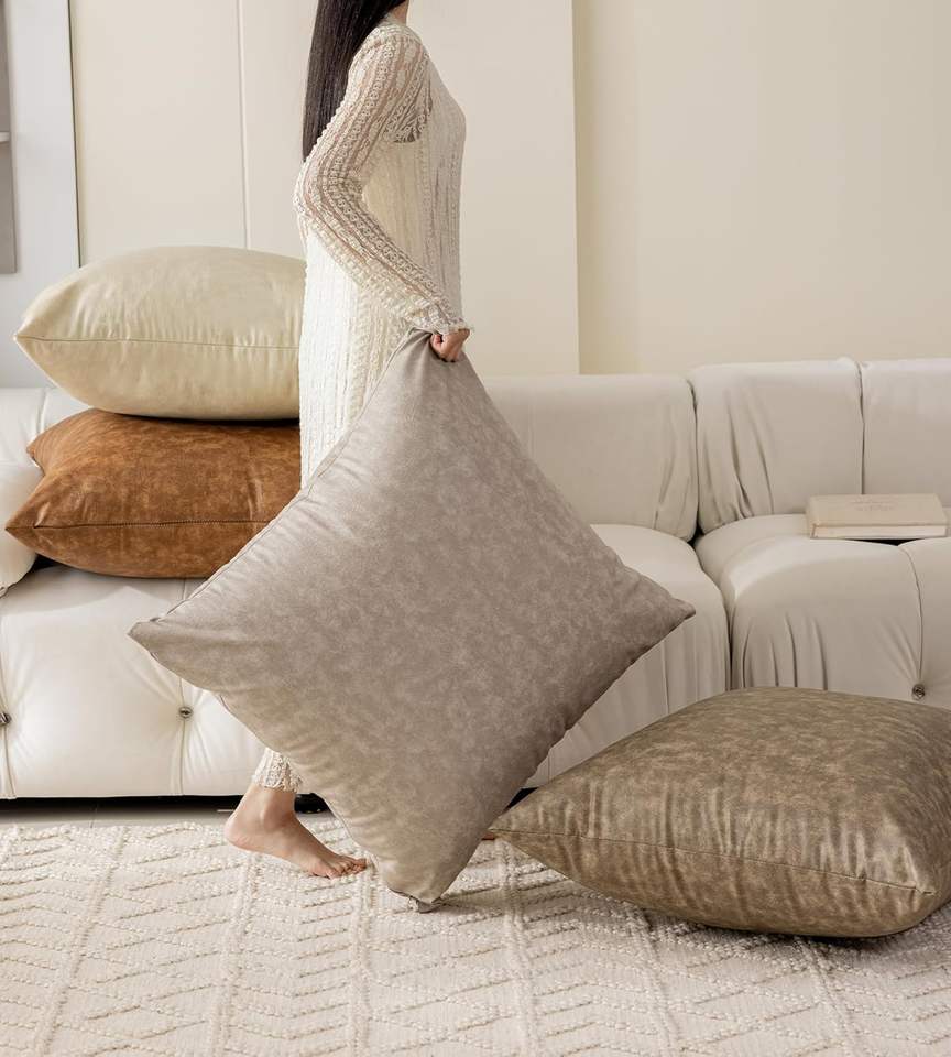 Fundas De Almohada decorativas neutras de piel sintética de gran tamaño de 26x26 pulgadas, cojín de suelo impermeable de lujo moderno suave sin látex