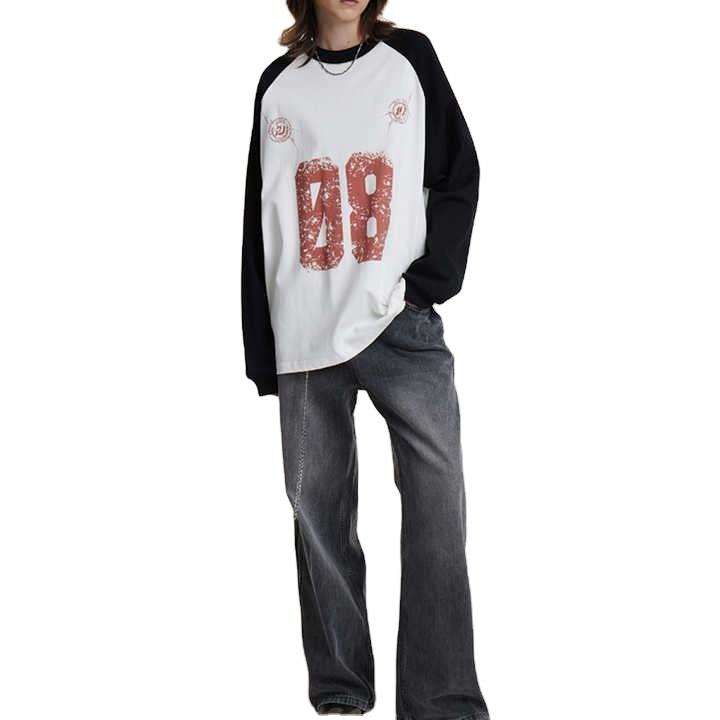 Camiseta de Manga Larga con Estampado Gráfico Y2K de Algodón de Doble Capa y Corte Holgado para Mujer