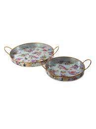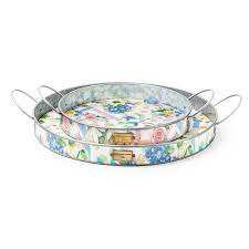 Bandeja Galvanizada Hecha a Mano de Gran Tamaño, Diseño Pintado a Mano, Forma Irregular, Estilo Rústico Vintage para Granja o Campo