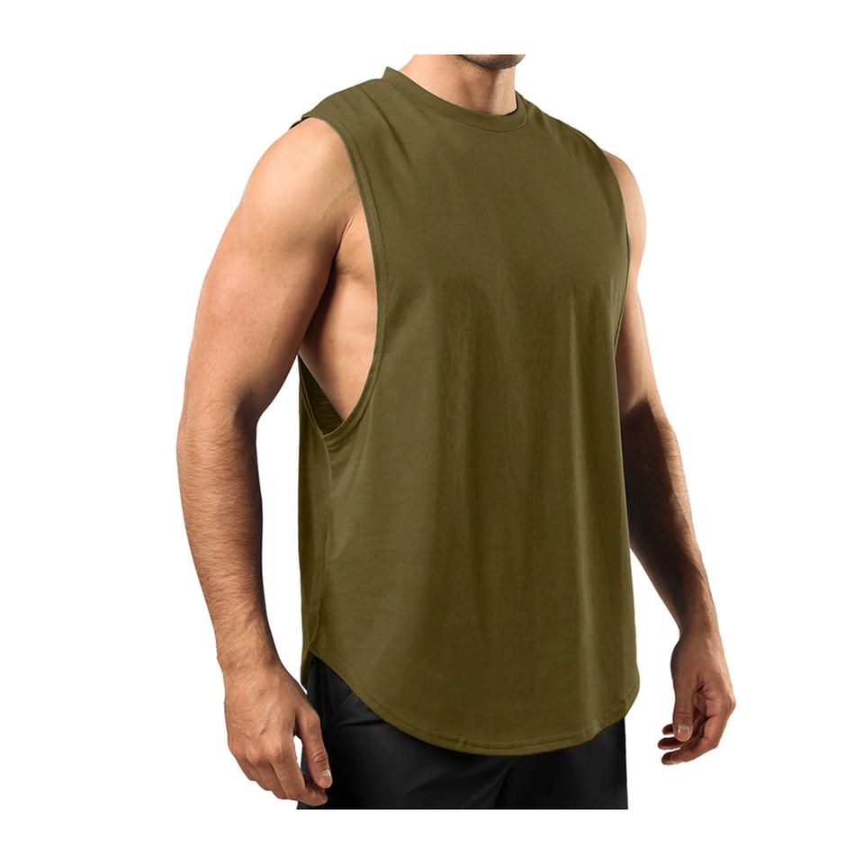 Camiseta sin mangas para correr informal de algodón 100% personalizada lavada ecológica transpirable de color liso de talla grande para hombre