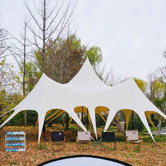 Toldo de Lona Impermeable Extra Grande con Tres Picos, Tipo Lotus, con Bolsa para Poste, para Acampar al Aire Libre