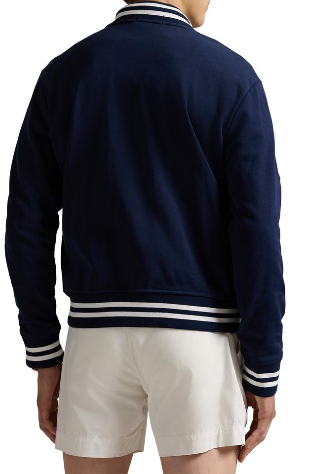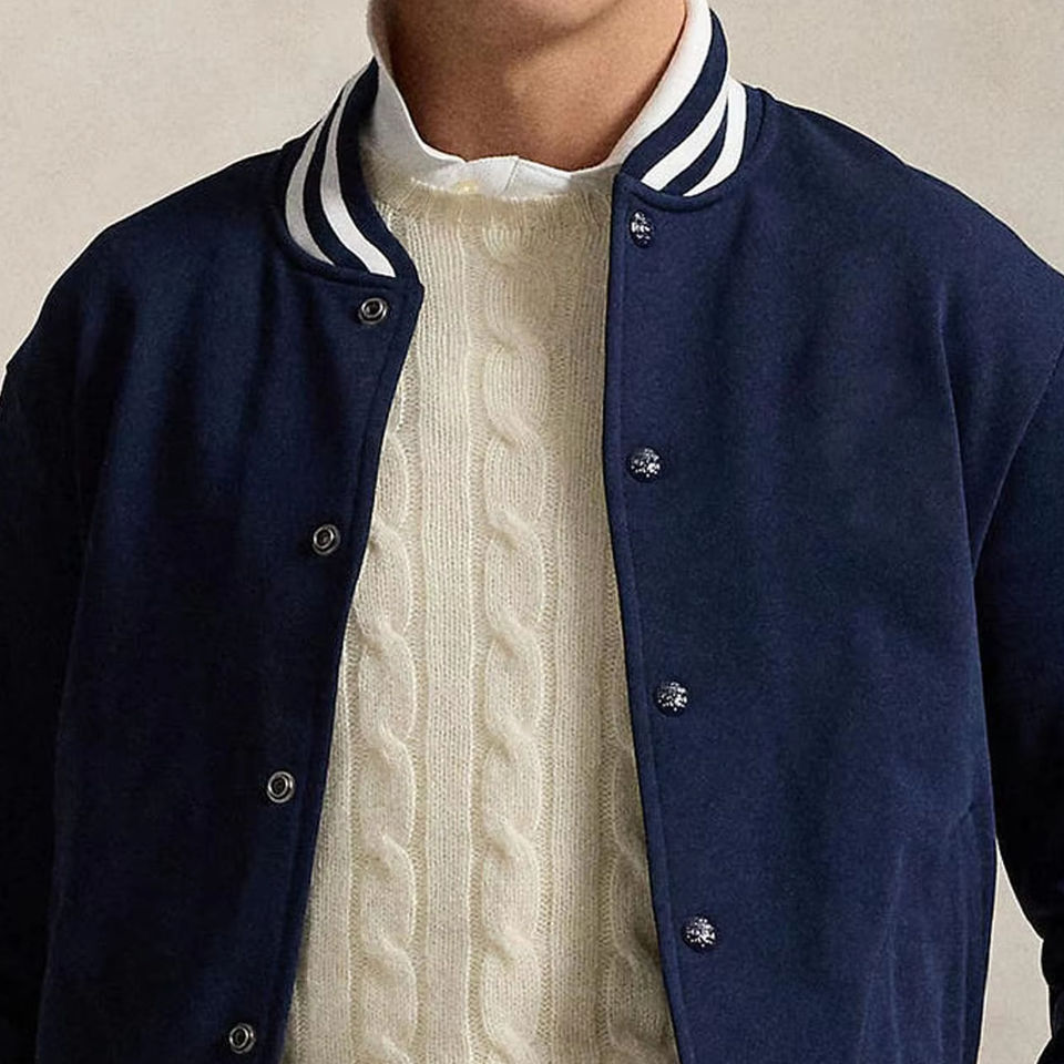 Chaqueta universitaria de gran tamaño con cuello acanalado y cuello azul marino para hombre, chaqueta de béisbol universitaria Letterman, chaqueta de bombardero Varsity para hombre