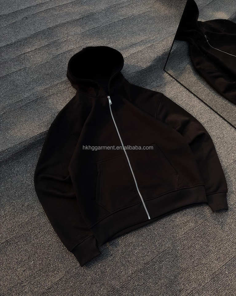 Sudadera con capucha extragrande con cremallera completa, logotipo personalizado con estampado en relieve, estilo Y2K, de algodón, estilo urbano, sudaderas con cremallera completa en blanco, de fábrica