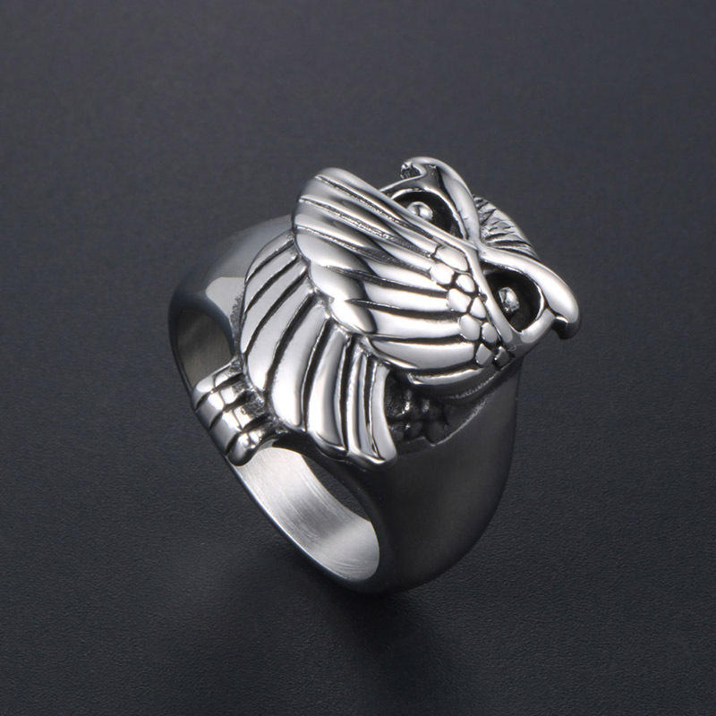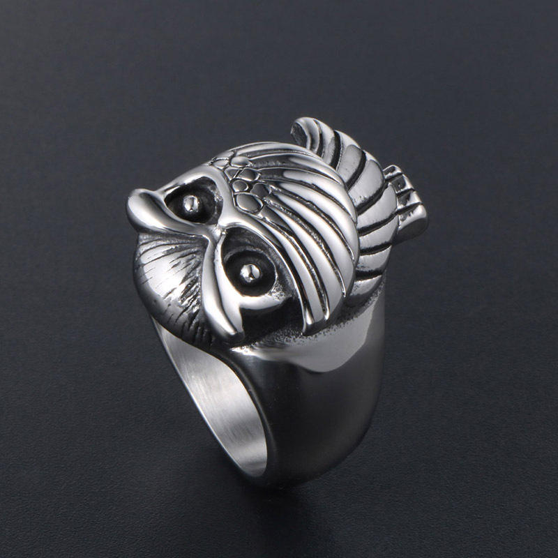 Anillo de acero de titanio con forma de animal, búho, joyería de moda unisex, regalo SA525
