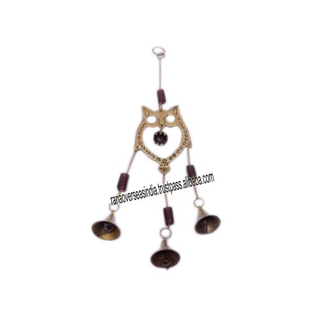 Nombre del producto:Campana de Viento Colgante de Latón con Diseño de Búho, 3 Campanillas y Cuentas