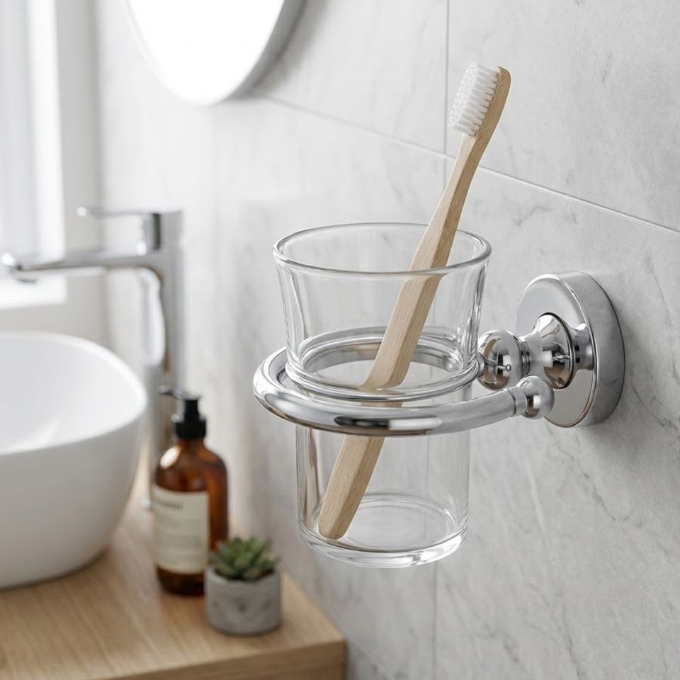 Juego de Accesorios de Baño, Soporte para Vaso Montado en la Pared, Clásico, Sostenible, de Lujo, Soporte para Cepillo de Dientes y Pasta Dental, Cromado