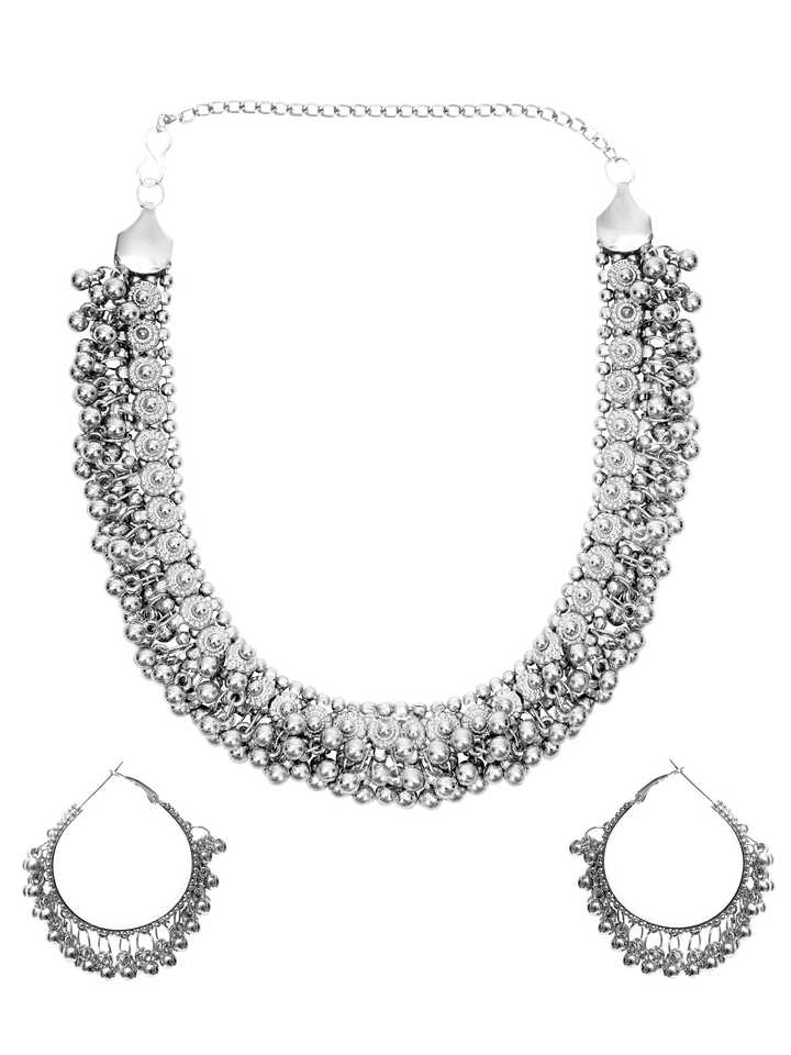 Nombre del Producto:Conjunto de collar y pendientes de plata oxidada