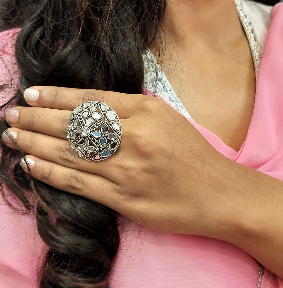 Diseño:Elegantes anillos indios oxidados de plata para mujeres y niñas,